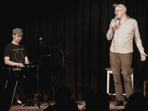 Copyright: HOB I RAUM WILLI LANDL: GESANG MICHAEL HORNEK: PIANO, GESANG Willi Landl schreibt keine Texte, die beim einen Ohr rein gehen, beim anderen raus und dazwischen kommt irgendwo im Refrain „love“ vor. Er ist ein Überzeichner, Übertreiber und Verdichter und kann Worte wie Hosenboden, Käseigel oder Nagellacksäufer nicht nur singen, sondern poetisch adressieren. Michael Hornek hat die Gabe, sich mindestens so harmonieverströmt wie verrückt geworden in Stücke zu versenken. Seine Klaviatur switcht dabei zwischen Brecht, Hollywood, Zappa, Schubert, Dracula,…